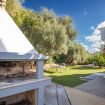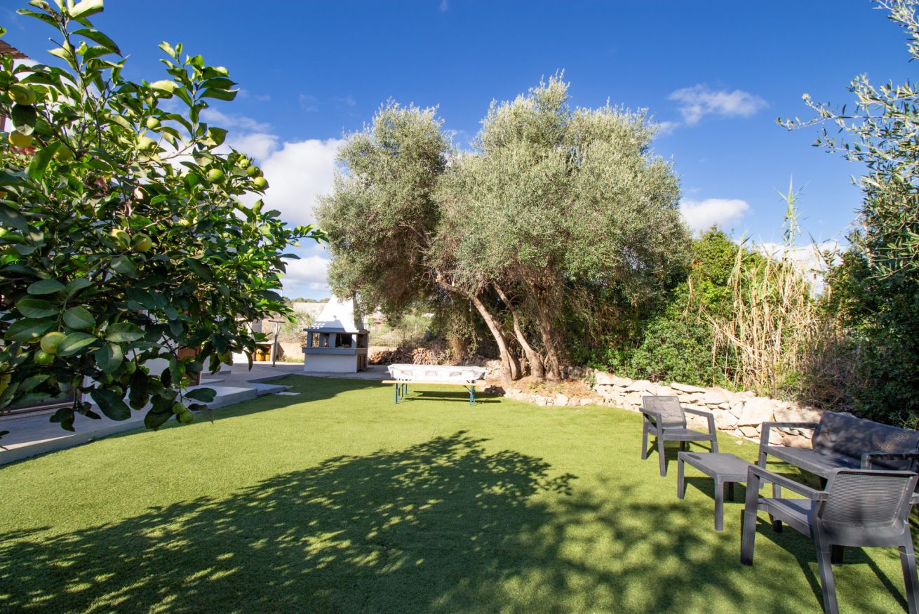 L'ampio giardino esterno, condivisibile con l'appartamento adiacente, include una zona barbecue con doccia esterna.